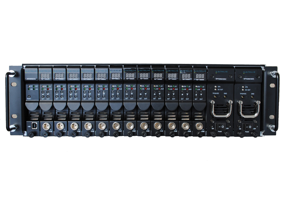 SPARK5100平台安装于标准19寸机架,具备3RU高度,17个模块插槽。单电源应用时可插入15个功能模块。双电源应用(负载均衡)时插入13个应用模块。SPARK5100系列模块包括正反向发射和正向接收模块,反向接收模块(标准型和RFoG型),光放大、色补、光切换开关、前置放大和网管模块等。