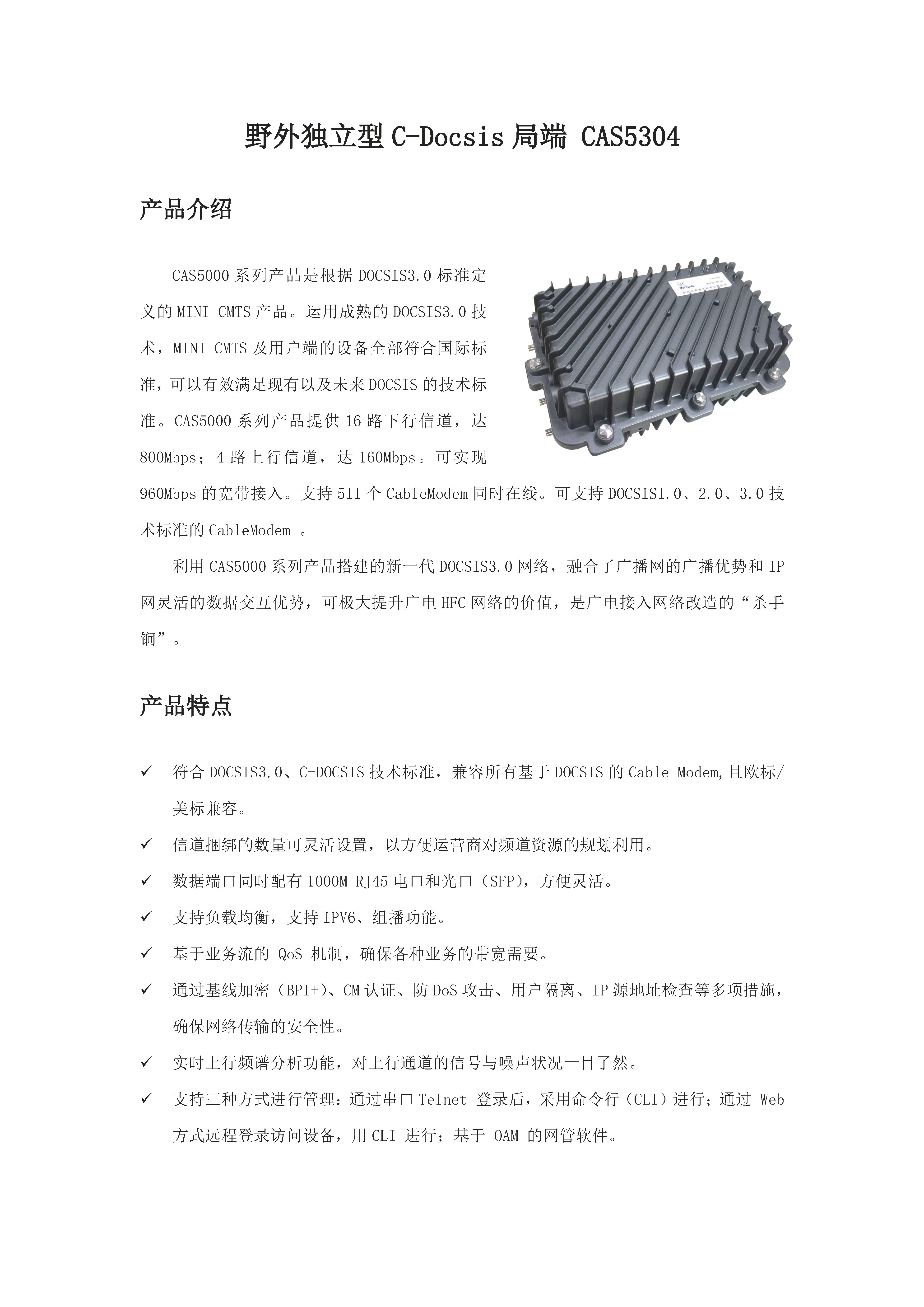 野外独立型C-Docsis 局端CAS5304
