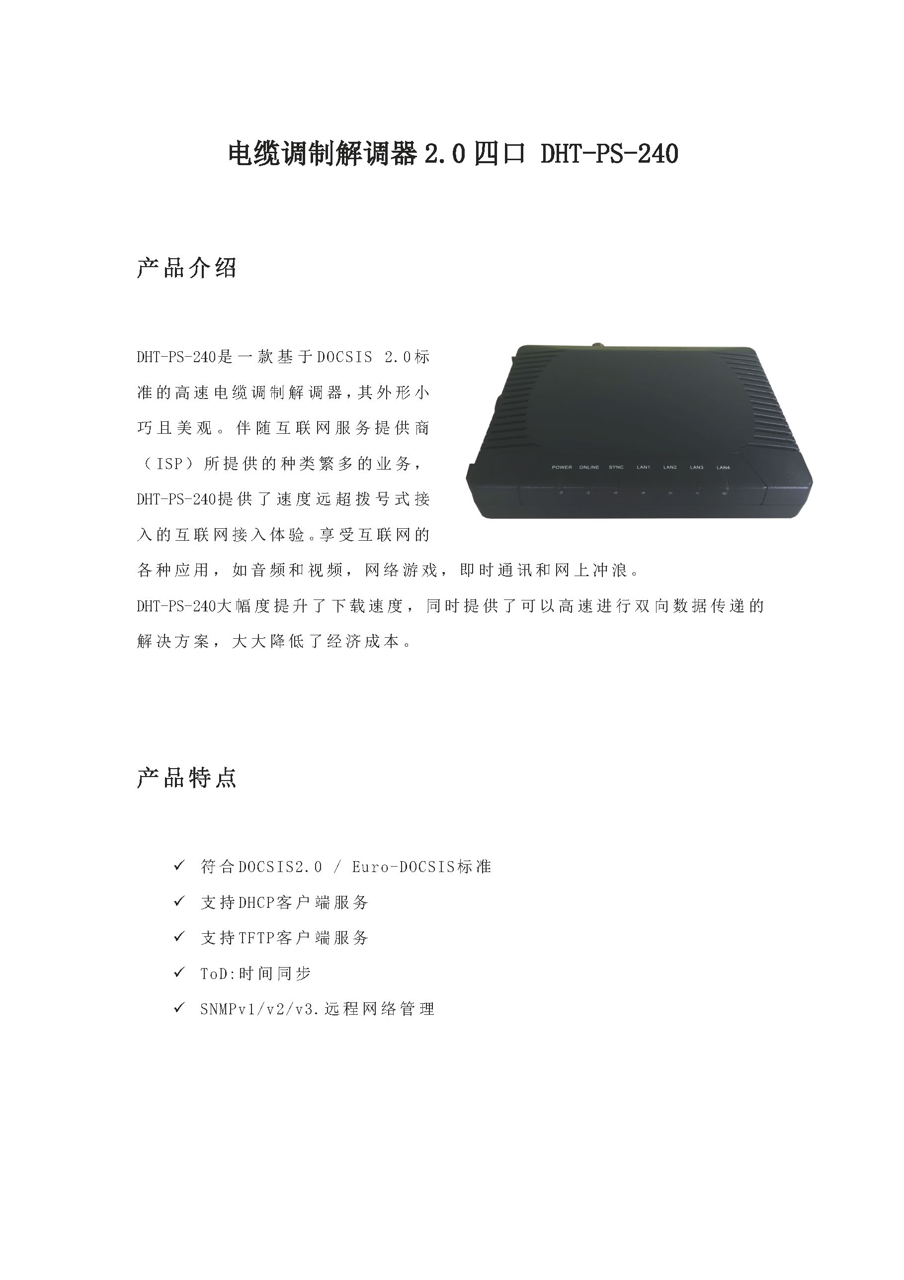 电缆调制解调器2.0 四口DHT-PS-240