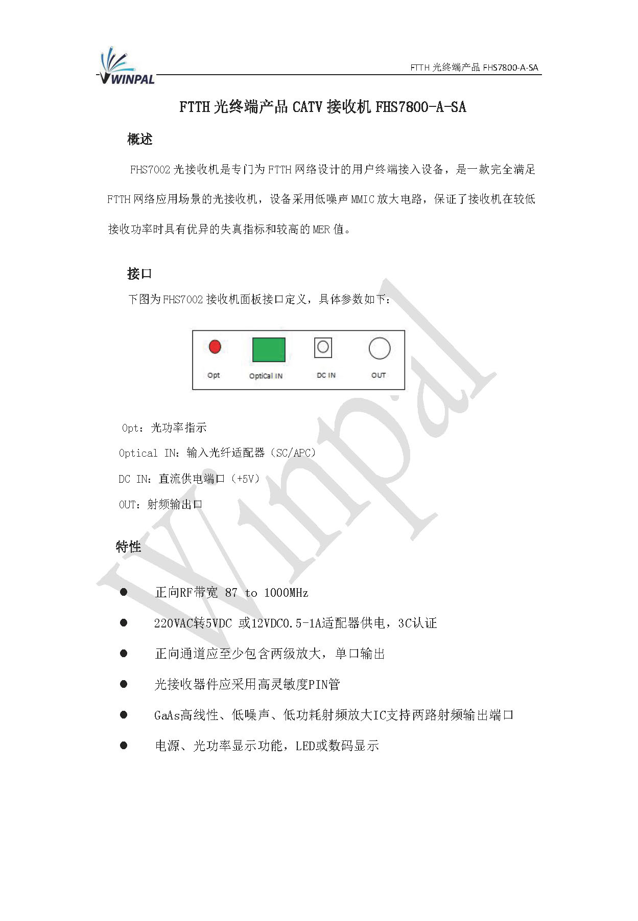 FTTH 光终端产品CATV 接收机FHS7800-A-SA